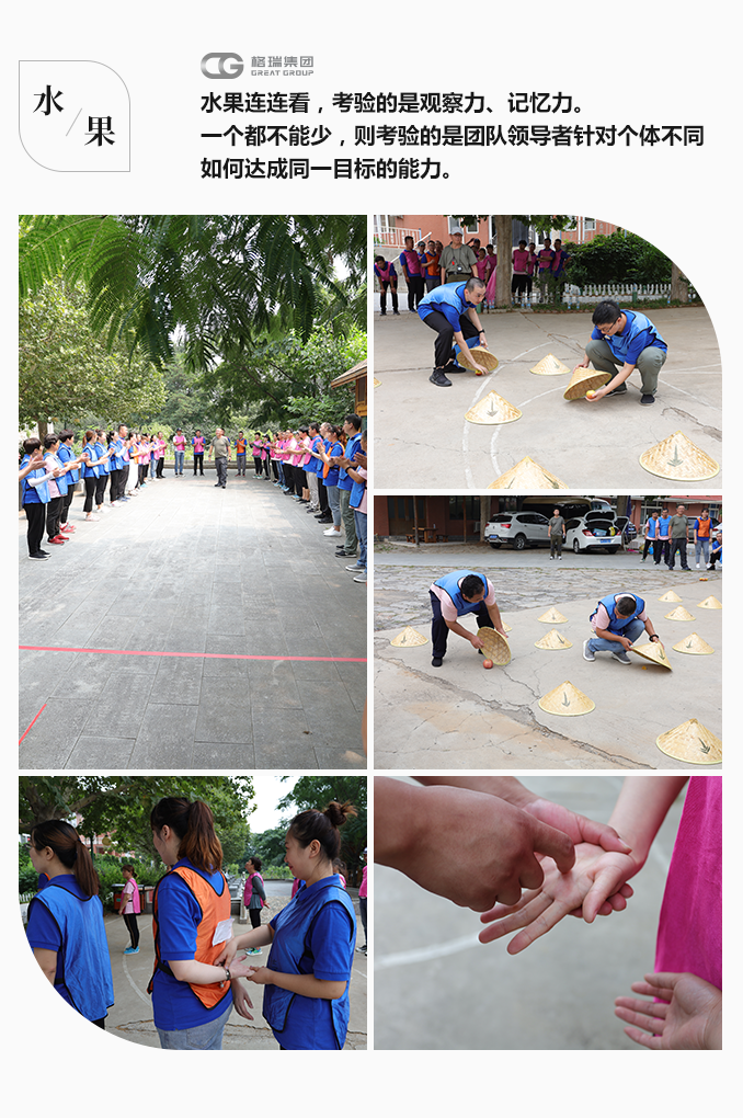水果連連看,考驗(yàn)的是觀察力、記憶力。一個(gè)都不能少,則考驗(yàn)的是團(tuán)隊(duì)領(lǐng)導(dǎo)者針對個(gè)體不同如何達(dá)成同一目標(biāo)的能力。