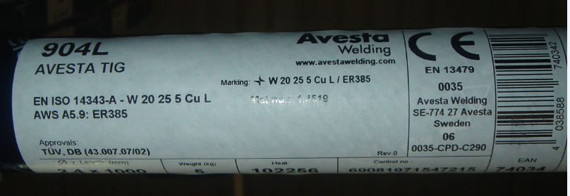 904L不銹鋼/E385焊條 904L焊條是純奧氏體Cr-Ni-Mo-Cu結構電焊條,焊接ASTM 904L或類似不銹鋼,904L焊絲熱裂紋比316L電焊條敏感,要考慮低熱量輸入和低層間溫度。 | |