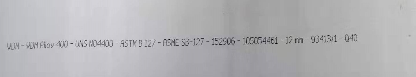 碳(C)≤0.30,鎳(Ni) ≥ 63.0,硅(Si)≤0.5,硫(S)≤0.024,鐵(Fe) ≤2.5,錳(Al) ≤2.0,銅(Cu) 28.0 ~34.0